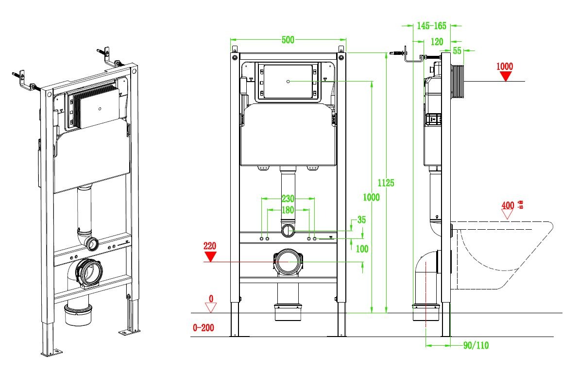 Инсталляция для унитаза Vincea VIS-2508. Кнопка смыва приобретается отдельно.