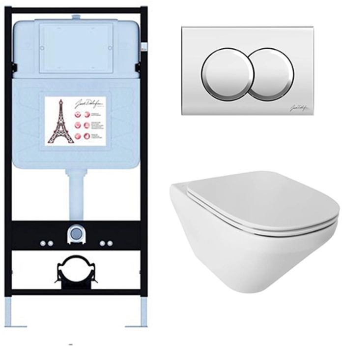 Инсталляция с подвесным безободковым унитазом Jacob Delafon Modern Life E21775RU-CP, сиденье с тонкой крышкой микролифт