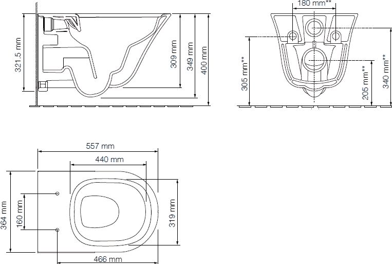 - Экономия воды: может работать при низком потреблении воды 2,6 /4 л.