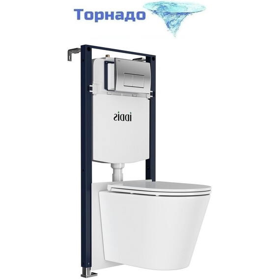 Инсталляция с подвесным безободковым унитазом комплект: Iddis Calipso CAQPO1GCi73 сиденье микролифт, крепление, кнопка смыва хром (система смыва Торнадо)