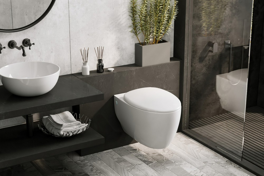 - Состоит из подвесного керамического унитаза с импульсным смывом, сиденья для унитаза из дюропласта с микролифтом, инсталляции для унитаза ABBER AC0101P