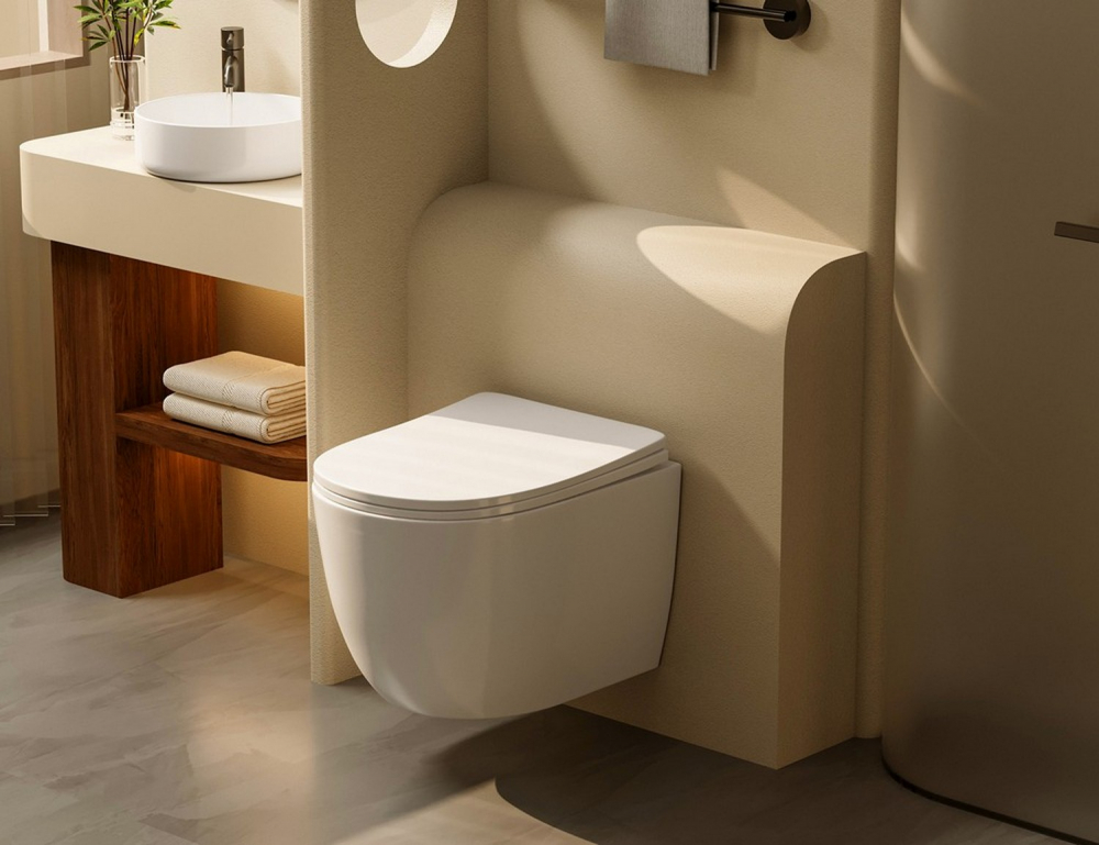 - Состоит из подвесного керамического унитаза со смывом торнадо, сиденья для унитаза из дюропласта с микролифтом, инсталляции AC0105, кнопки смыва из нержавеющей стали, в цвете розовое золото.