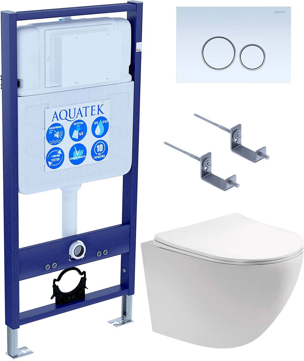 Инсталляция с подвесным унитазом комплект: Aquatek Set INS-0000012 с подвесным безободковым унитазом Европа AQ1901-00 сиденье микролифт, крепление, кнопка смыва белая