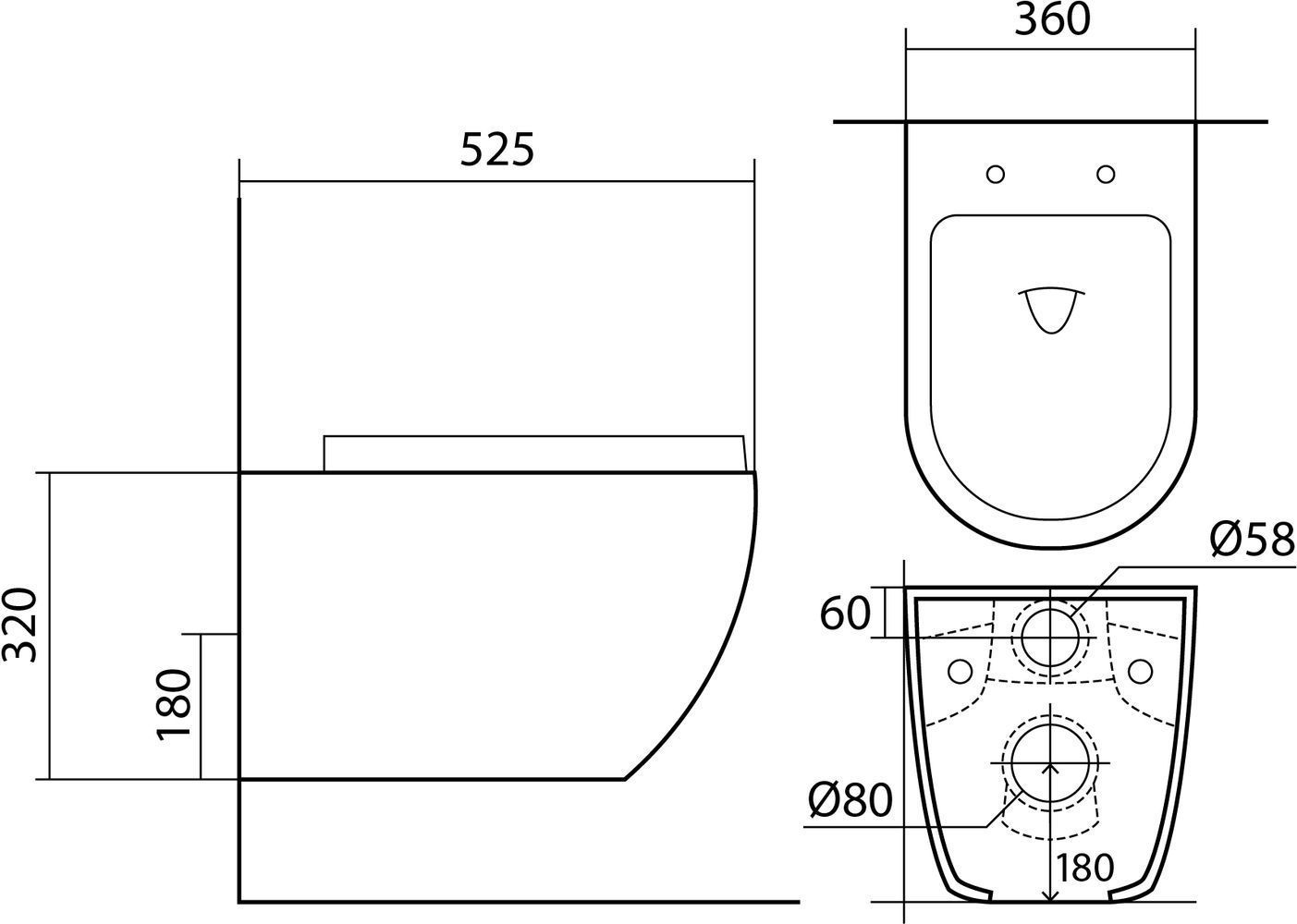 - Чаша унитаза безободковая 525x360x320