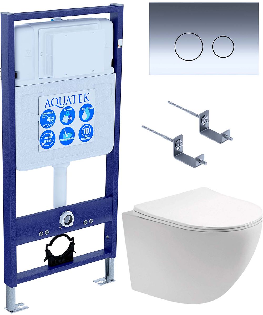 Инсталляция с подвесным унитазом комплект: Aquatek Set INS-0000012 с подвесным безободковым унитазом Европа AQ1901-00 сиденье микролифт, крепление, кнопка смыва хром глянцевый