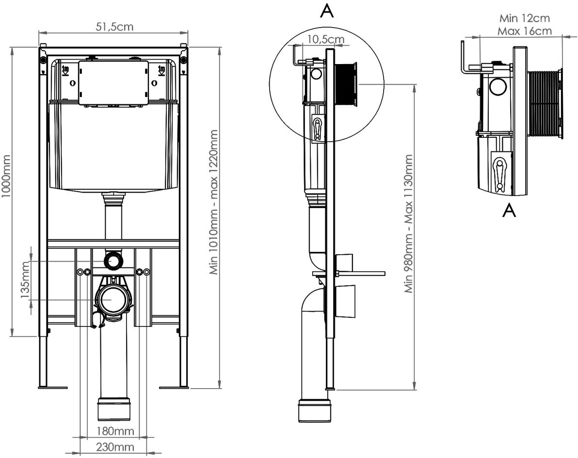 - Надежность и долговечность: Прочная стальная рама обеспечивает надежную фиксацию подвесного унитаза и выдерживает значительные нагрузки, гарантируя долгий срок службы.