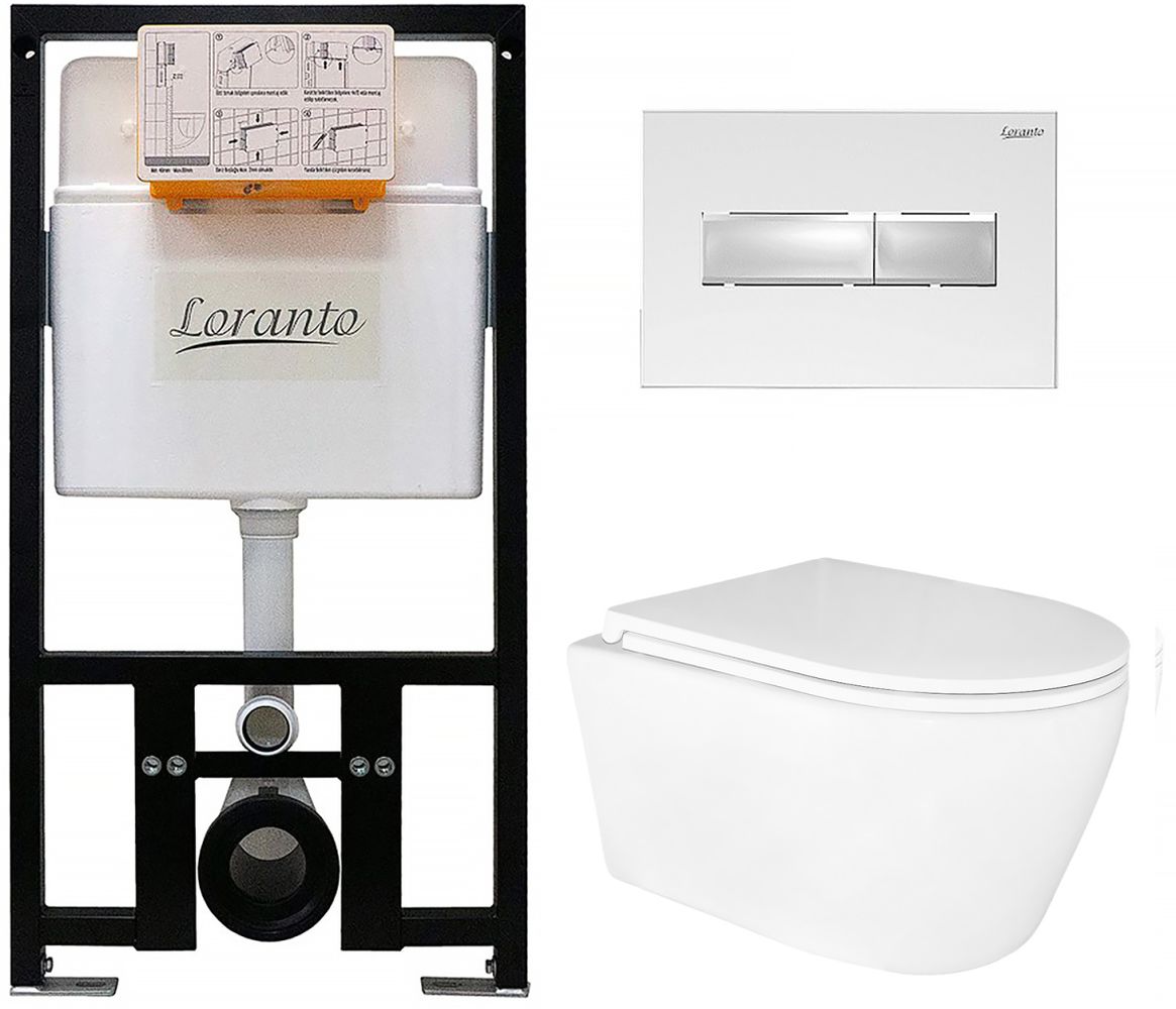 Инсталляция с подвесным унитазом комплект: Loranto Prestige 4551 с подвесным безободковым унитазом Azario Uno AZ-2380 сиденье микролифт, кнопка смыва белая 7520.