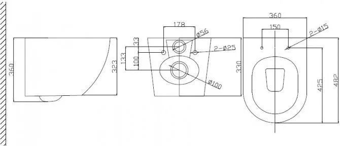 - Комплект крепежных элементов для установки унитаза (установочное расстояние 180 мм)