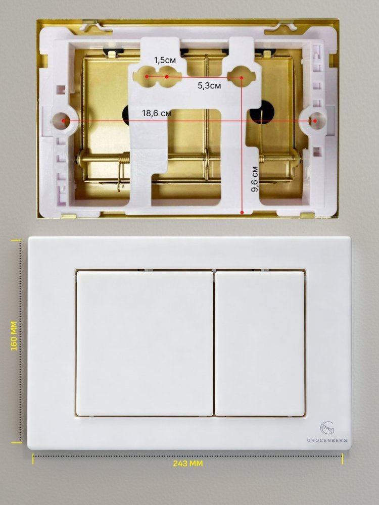 - Кнопка смыва GROCENBERG KP3080W — это не просто элемент сантехники, это ваш шаг к миру чистоты и порядка в ванной комнате! Белый цвет кнопки смыва GROCENBERG KP3080W добавит изысканности и элегантности любому унитазу.