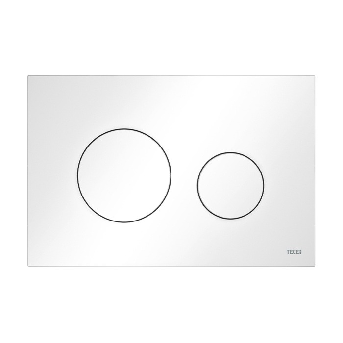 - Панель смыва для смывных бачков TECE, фронтальная или верхняя установка. Сверхплоская панель смыва с двумя установленными на пружинах клавишами. Совместима с контейнером для гигиенических таблеток.