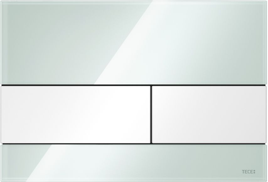 - Панель смыва для смывных бачков TECE, фронтальная или верхняя установка. Плоская стеклянная панель смыва с двумя установленными на пружинах клавишами привода кулисного типа. Подходит для монтажа на уровне стены вместе с монтажной рамкой унитаза для монтажа на уровне стены (например, арт. 9240649). Совместима с контейнером для гигиенических таблеток.