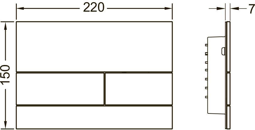 - Панель смыва для смывных бачков TECE, фронтальная или верхняя установка. Плоская стеклянная панель смыва с двумя установленными на пружинах клавишами привода кулисного типа. Подходит для монтажа на уровне стены вместе с монтажной рамкой унитаза для монтажа на уровне стены (например, арт. 9240649). Совместима с контейнером для гигиенических таблеток.