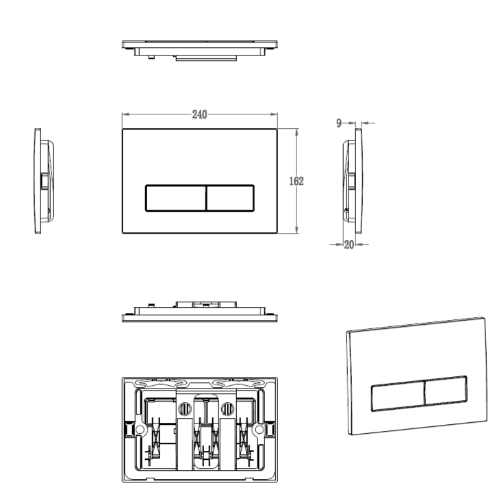 Кнопка смыва Wonzon & Woghand WW-IB224-CR, управление механическое, материал пластик, цвет хром.