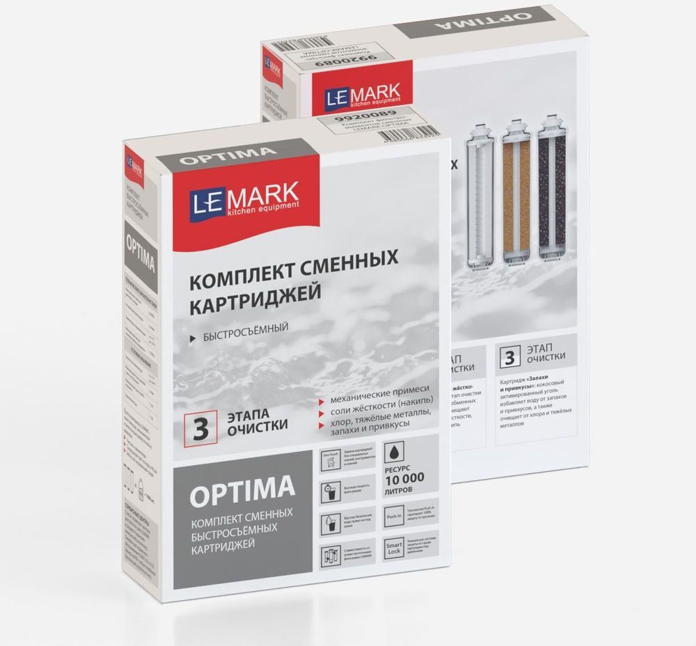 - Комплект сменных картриджей OPTIMA для специализированной очистки воды с повышенным содержанием солей жесткости. Позволяет забыть о накипи и получить вкусную безопасную воду.