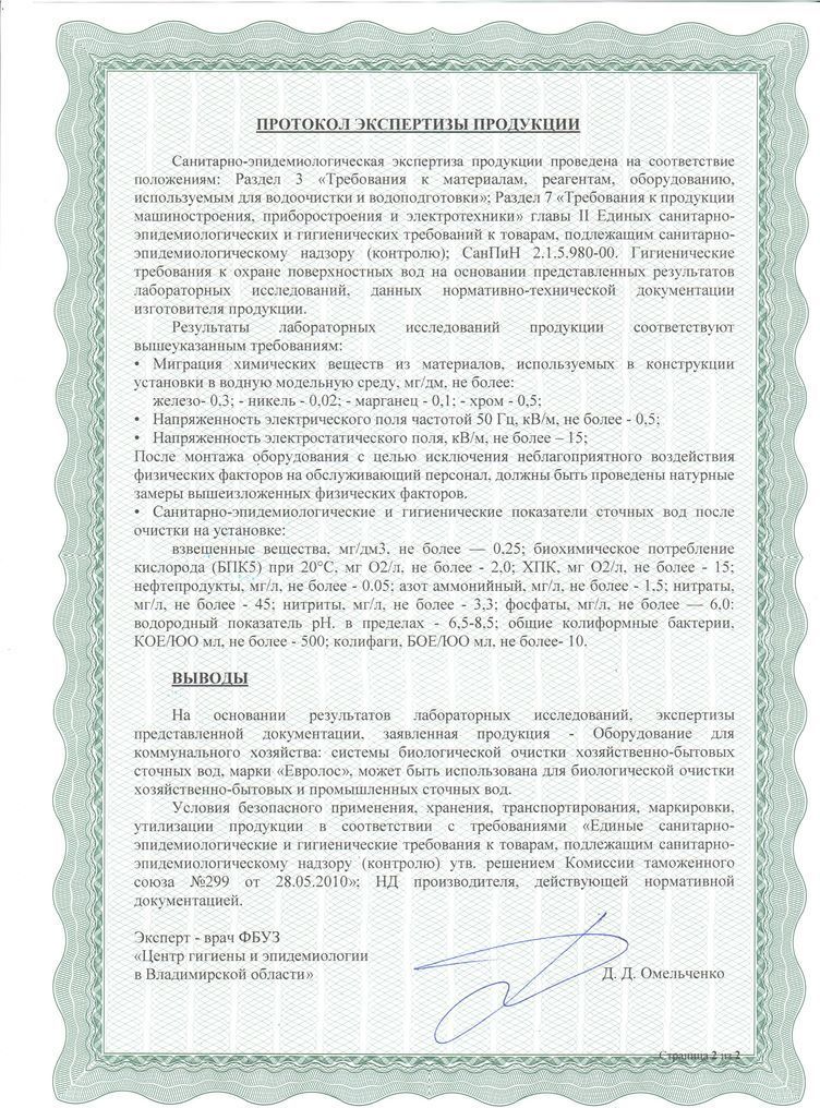 - Благодаря многофункциональности и высокой производительности, очистная станция Евролос Про может успешно применяться для обслуживания как небольших загородных участков, коттеджей и дач, так и целых поселков, загородных отелей и гостиниц. Простота монтажа и технического обслуживания, а также самой конструкции станции, позволяет без затруднений использовать Евролос Про для создания благ цивилизации на протяжении более 50 лет!