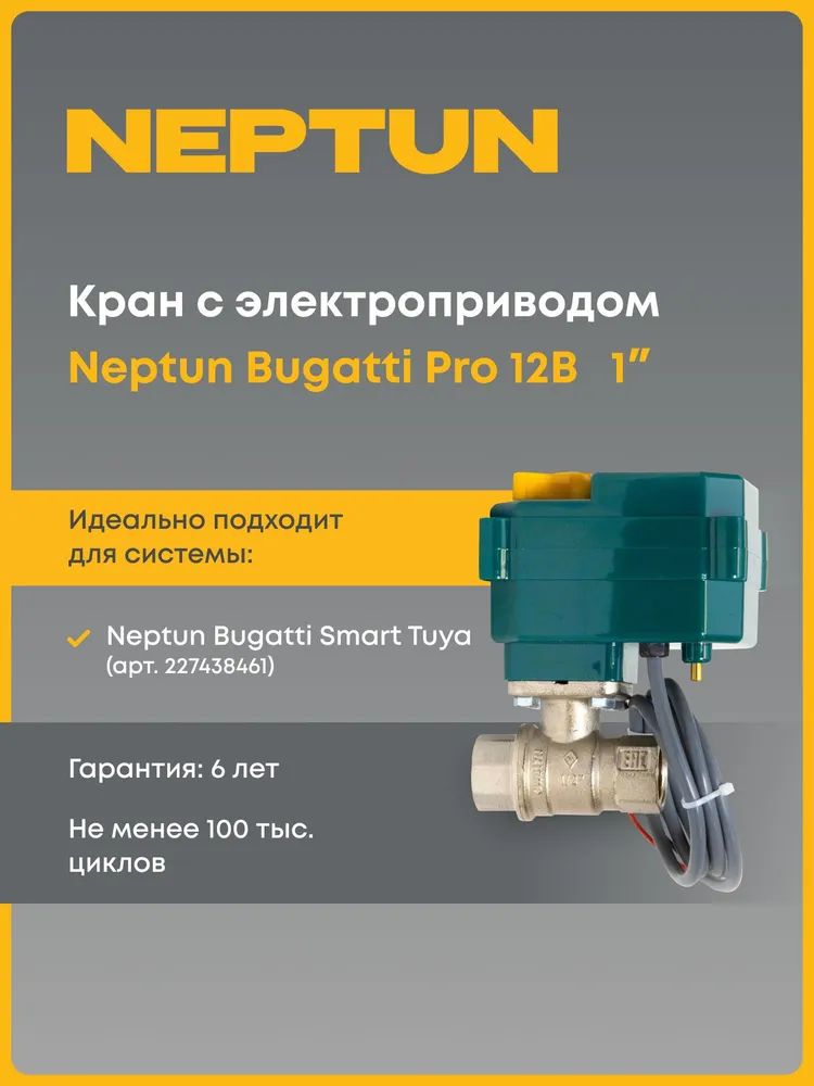 Кран шаровой с электроприводом Neptun Bugatti Pro 12В 1 Нептун Бугатти Про 100035601700