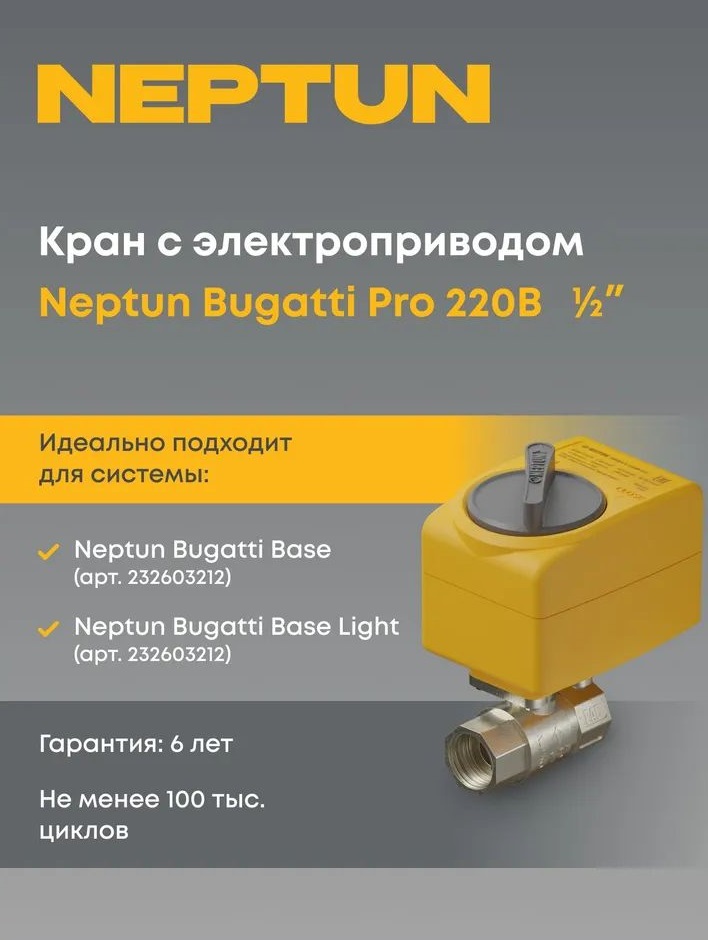 Кран шаровой с электроприводом Neptun Bugatti Pro 220В 1/2 Нептун Бугатти 100035632400