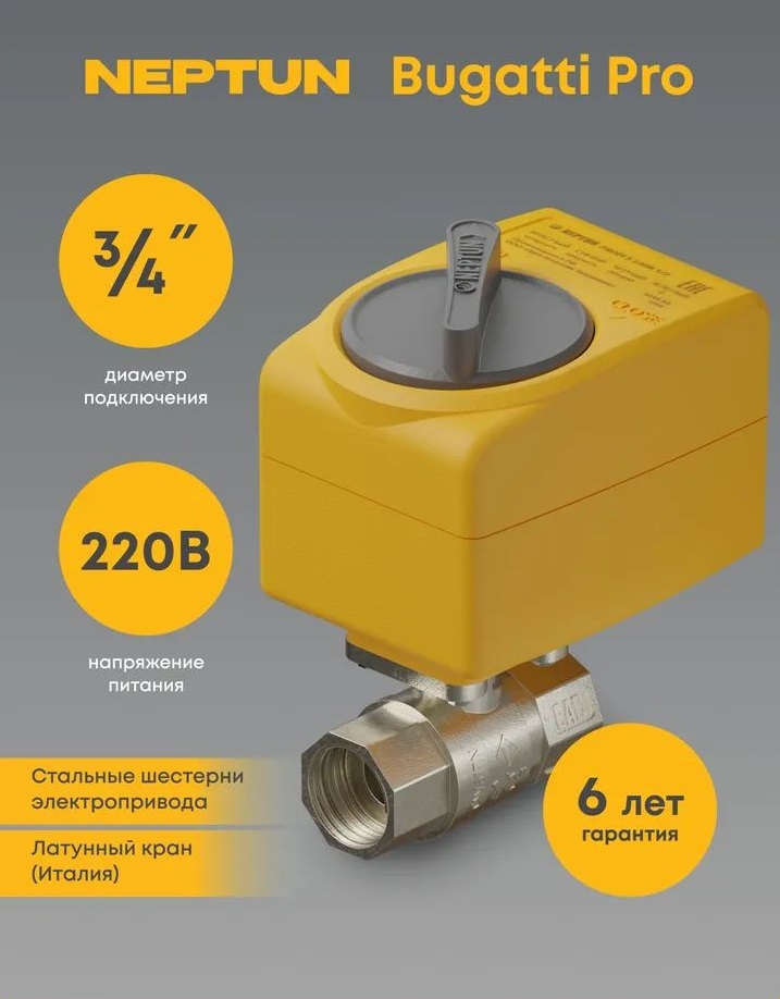 Кран шаровой с электроприводом Neptun Bugatti Pro 220В 3/4 Нептун Бугатти 100035632500