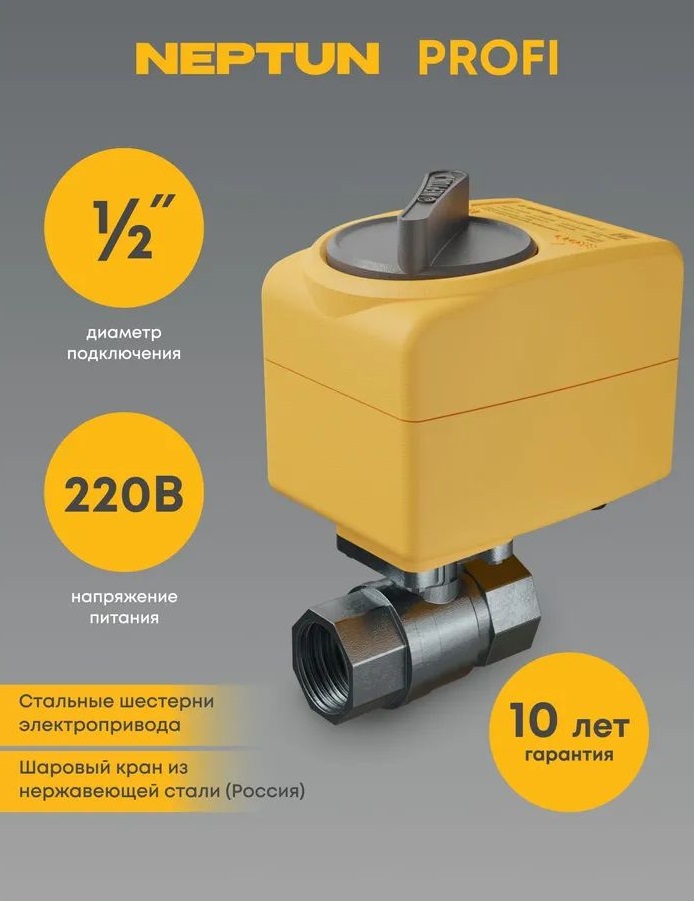 Кран шаровой с электроприводом Neptun PROFI 220В 1/2" Нептун Профи кран шаровый 100035693300