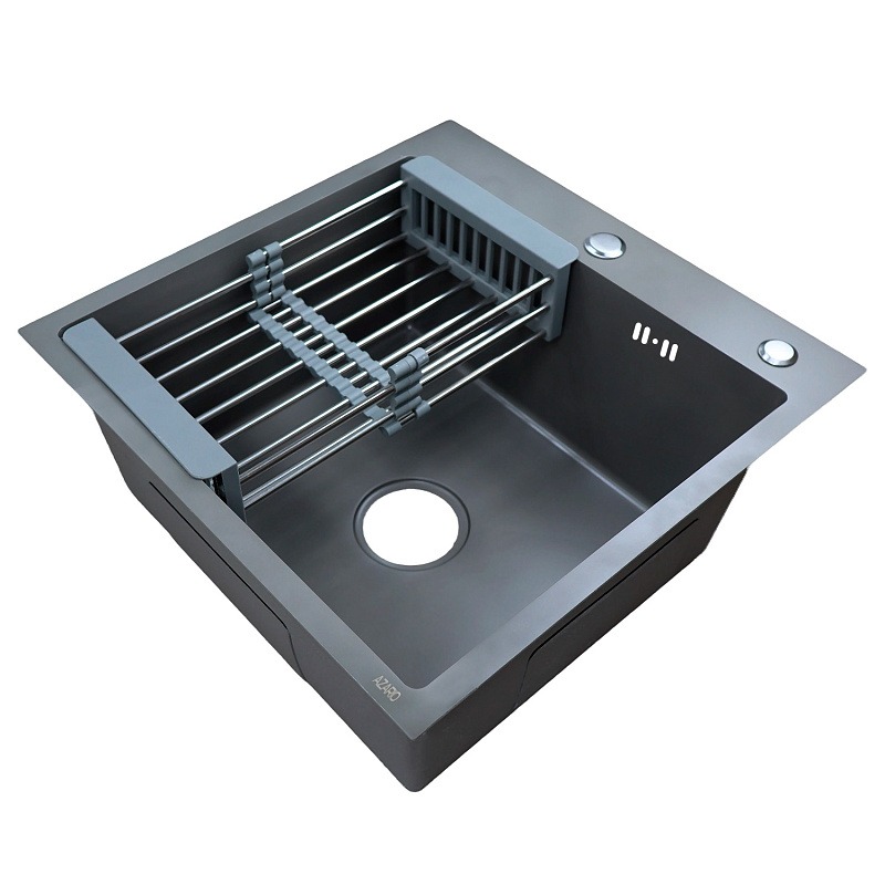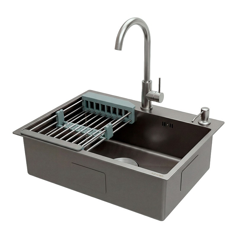 Кухонная мойка Azario Nicole AZG5050H с сифоном, дозатором и коландером, материал нержавеющая сталь. Цвет серый соты.