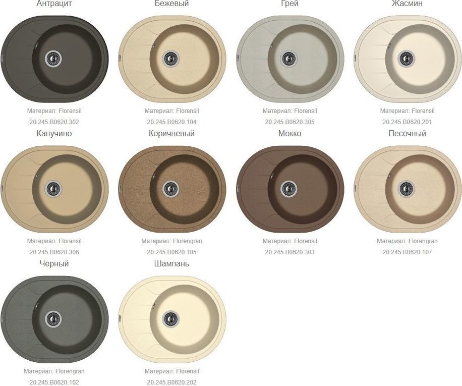 Кухонная мойка Florentina Родос 620 20.245.В0620.303, материал искусственный камень. Цвет мокко. Цвета моек в ассортименте.