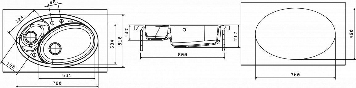 Врезная установка - способ установки, при котором в столешнице вырезается отверстие под размер мойки. Данный параметр подразумевает, что мойки будут устанавливаться поверх столешницы. Как правило размер отверстия под мойку на 2 см (20 мм) меньше внешнего размера мойки. Пример: Внешний размер мойки - 800х500 мм. Размер отверстия под данную мойку 780х480 мм.