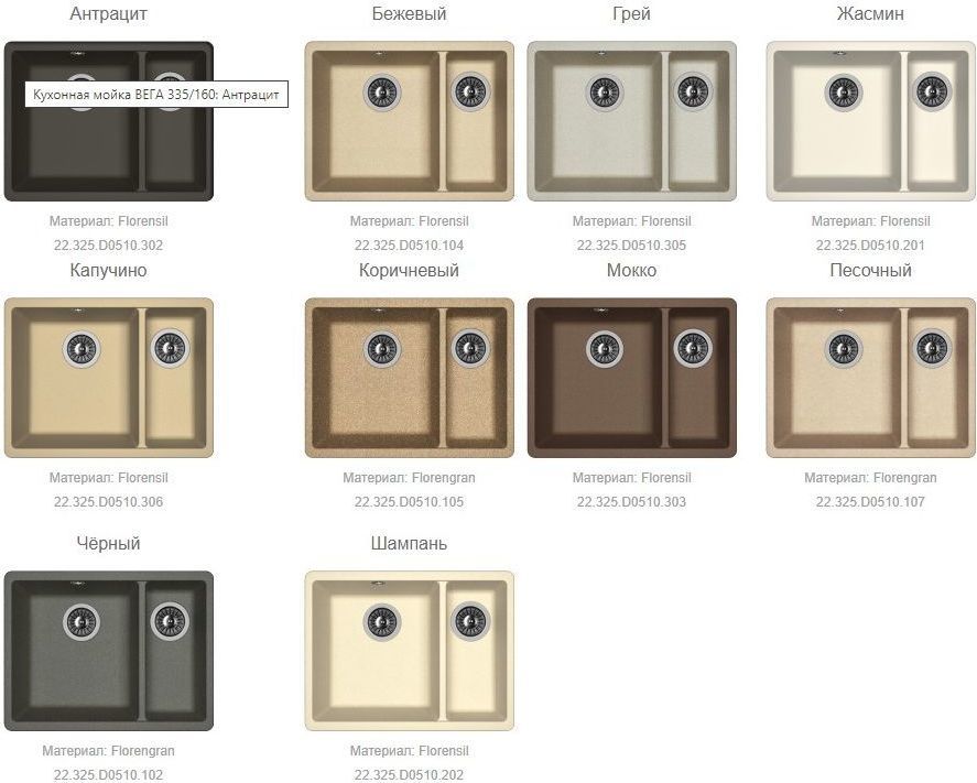 Кухонная мойка Florentina Вега 355/160 22.325.D0510.305, материал искусственный камень. Цвет грей. Цвета моек в ассортименте.