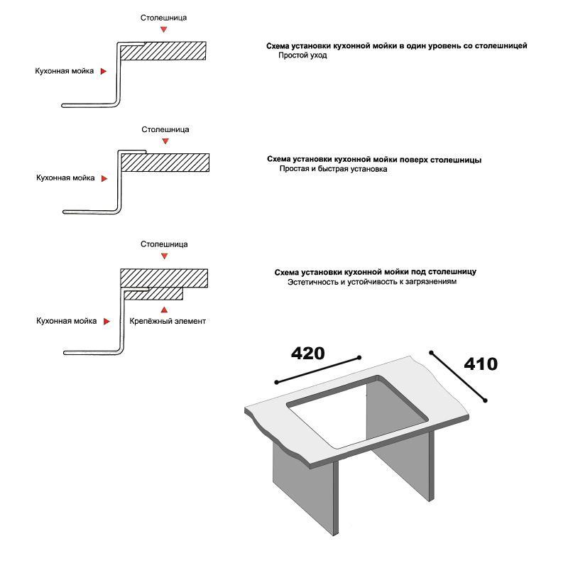 Врезная установка - способ установки, при котором в столешнице вырезается отверстие под размер мойки.