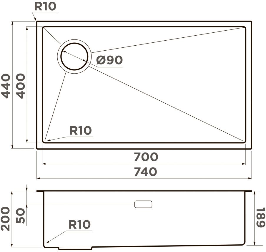 Врезная установка - способ установки, при котором в столешнице вырезается отверстие под размер мойки. Данный параметр подразумевает, что мойки будут устанавливаться поверх столешницы. Как правило размер отверстия под мойку на 2 см (20 мм) меньше внешнего размера мойки. Пример: Внешний размер мойки - 800х500 мм. Размер отверстия под данную мойку 780х480 мм.
