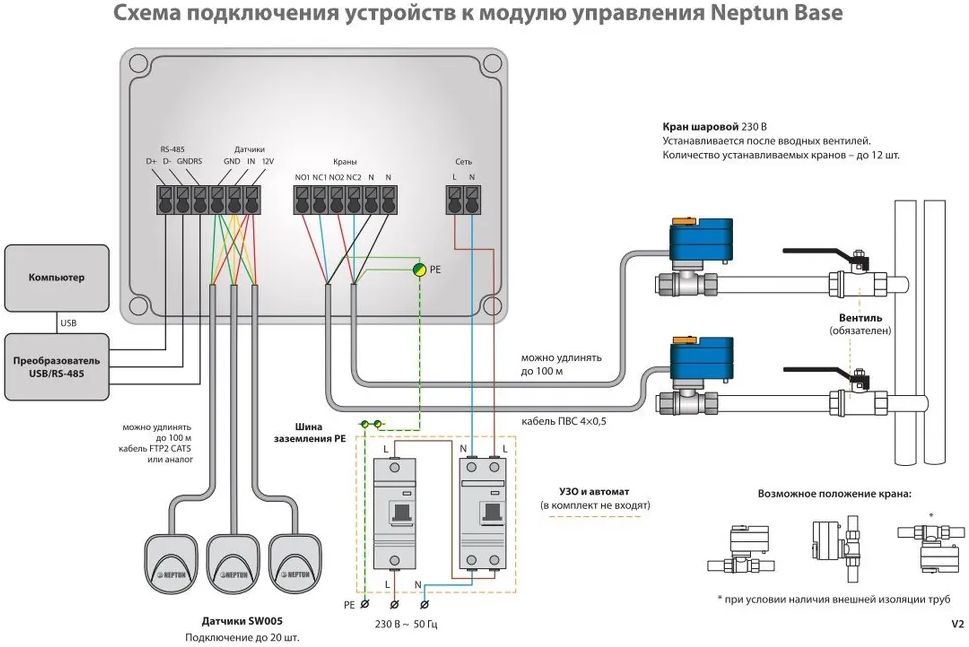 - Макс. кол-во подключаемых шаровых кранов с электроприводом: 6 шт.