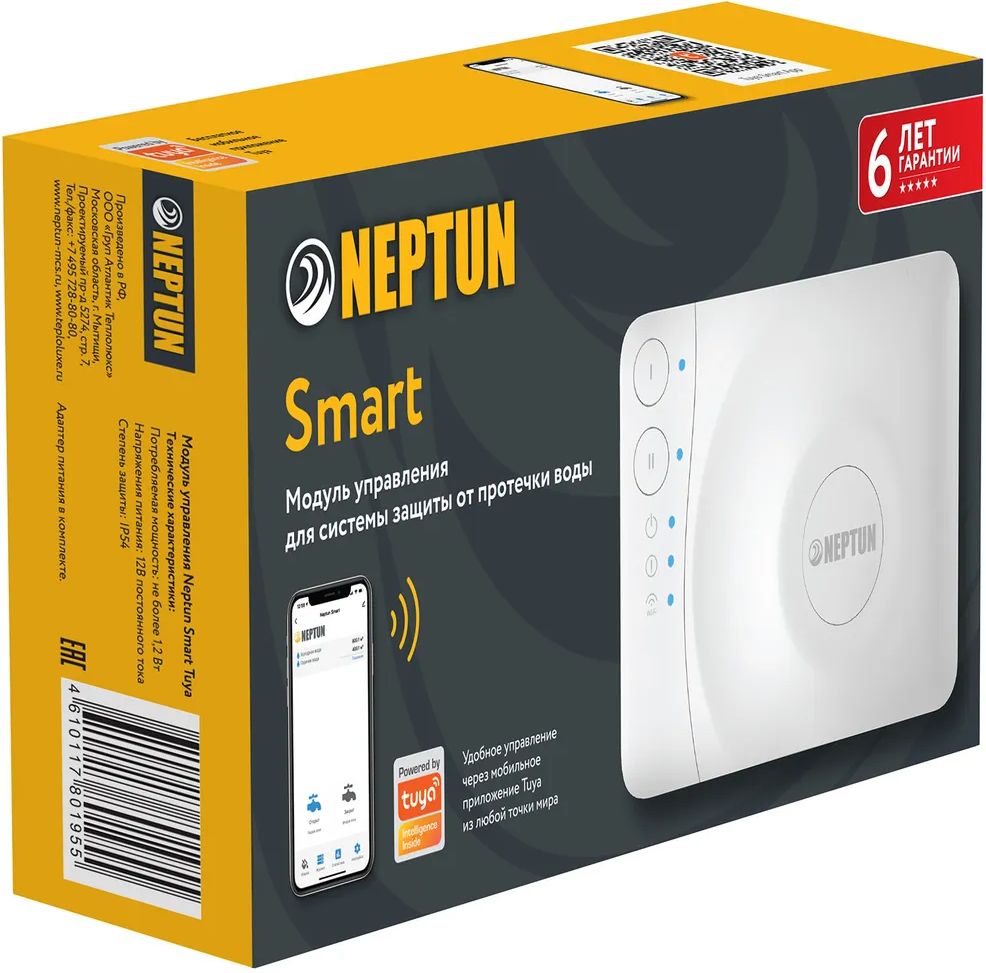 - Умный модуль управления Neptun Smart TUYA является центральным контроллером в системах защиты от протечки воды, считывает сигналы от датчиков контроля и управляет кранами, установленных в системах водоснабжения.