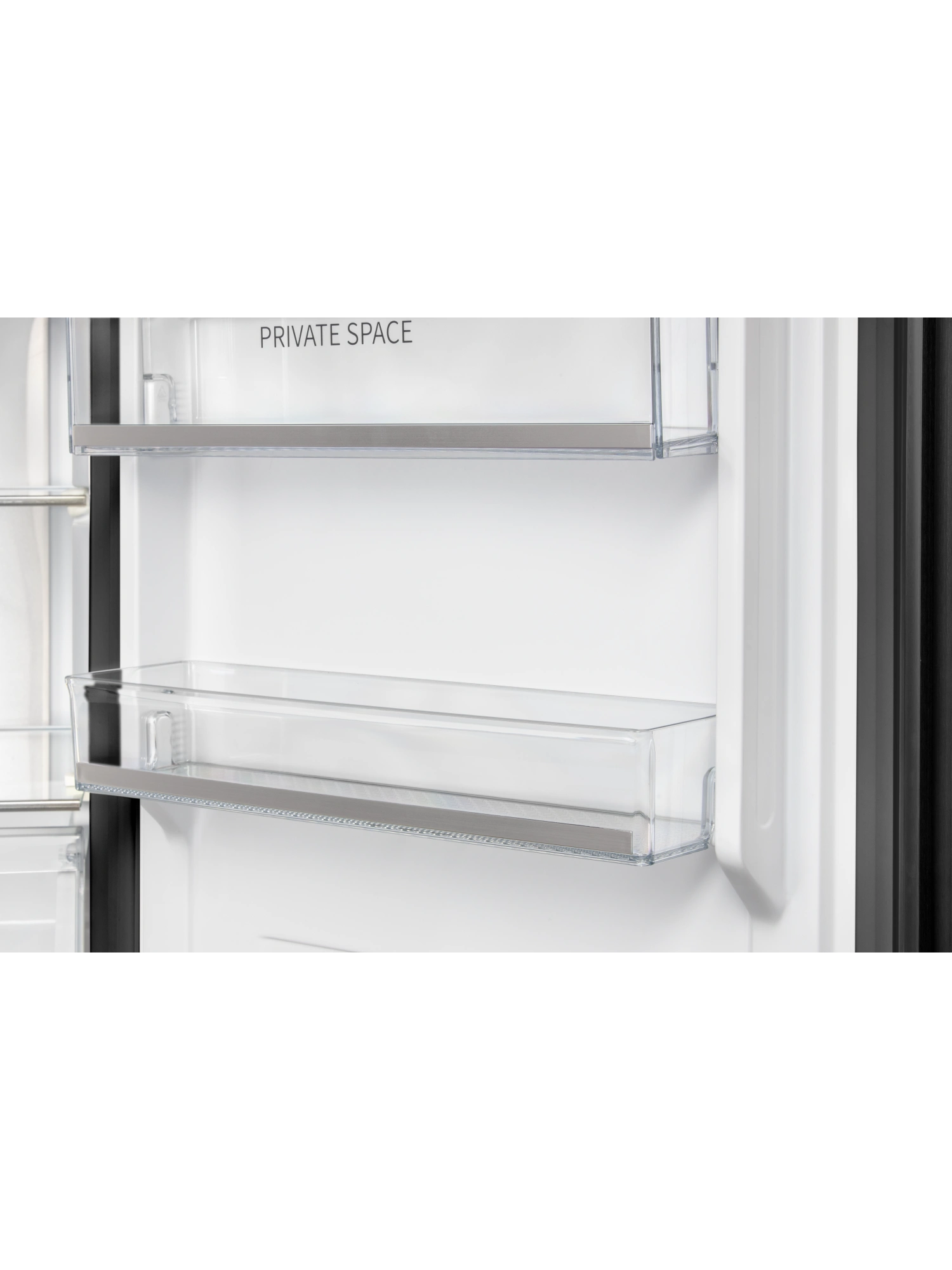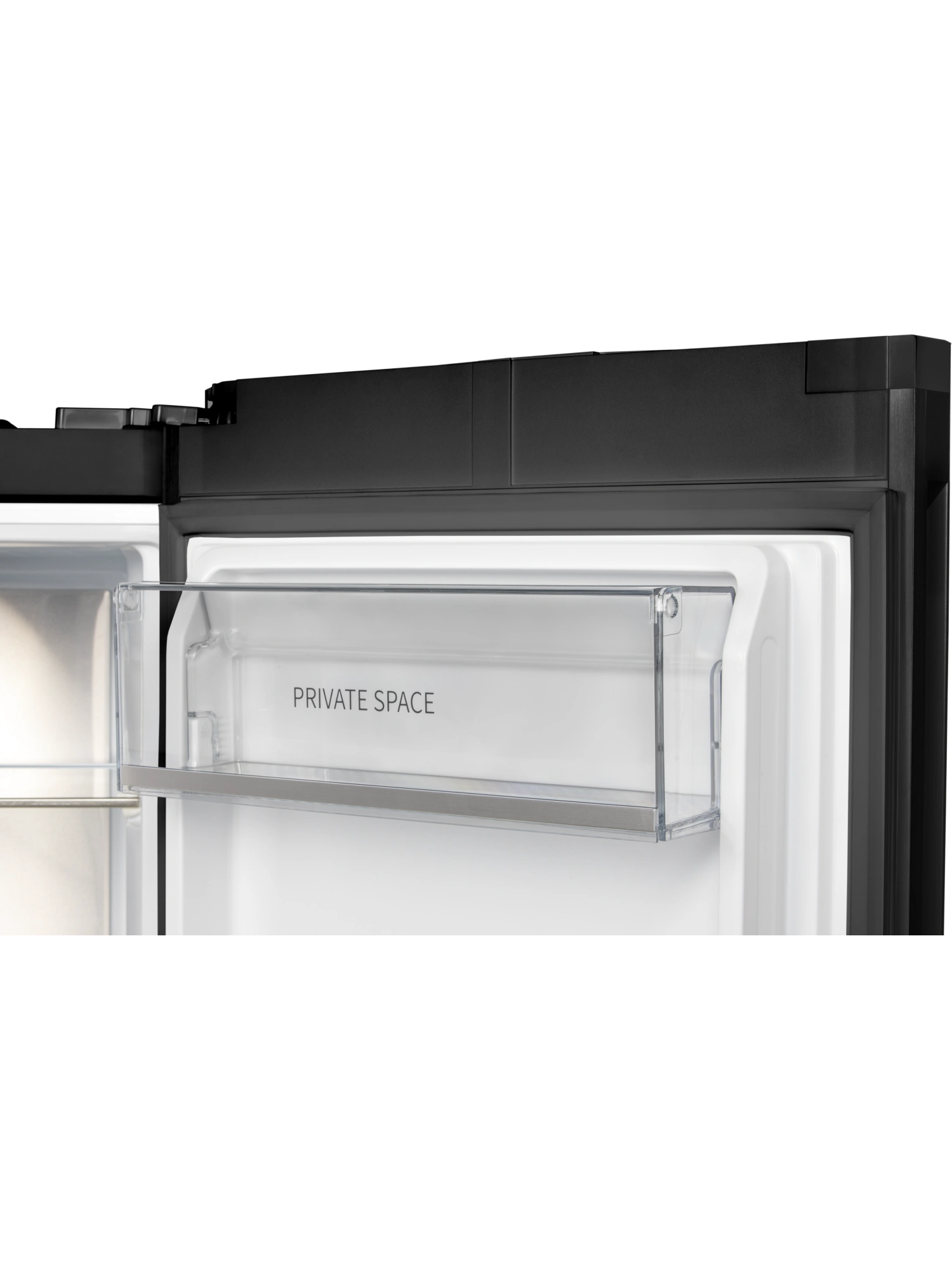 - Дверь морозильника имеет уникальный дизайн, выполнена из закаленного чёрного стекла. Дверь можно перенавесить с правой стороны на левую. Для легкого открывания в модели предусмотрена функция автооткрытия стуком — необходимо постучать по верхней части поверхности более двух раз, и дверь морозильника приоткроется.