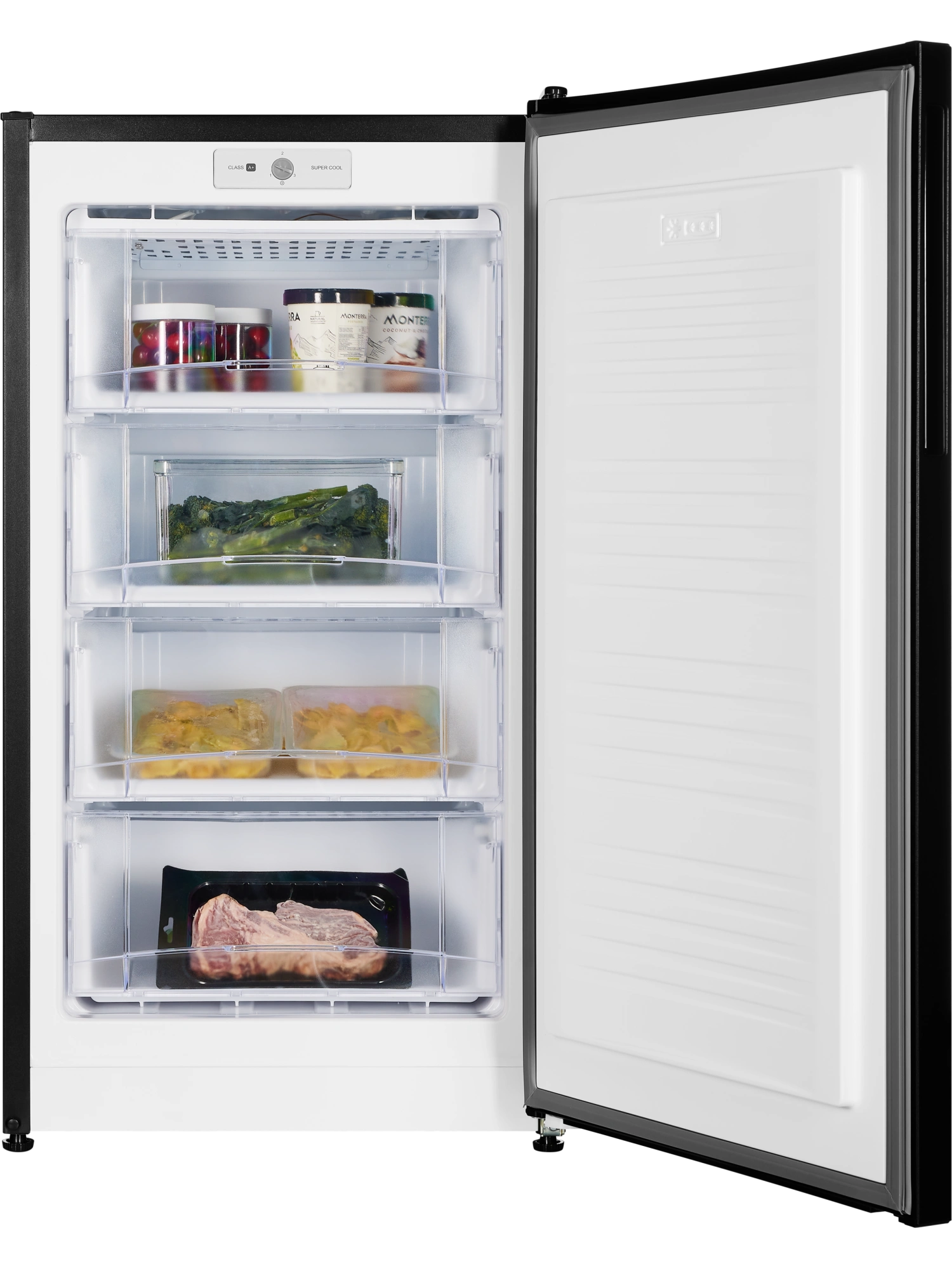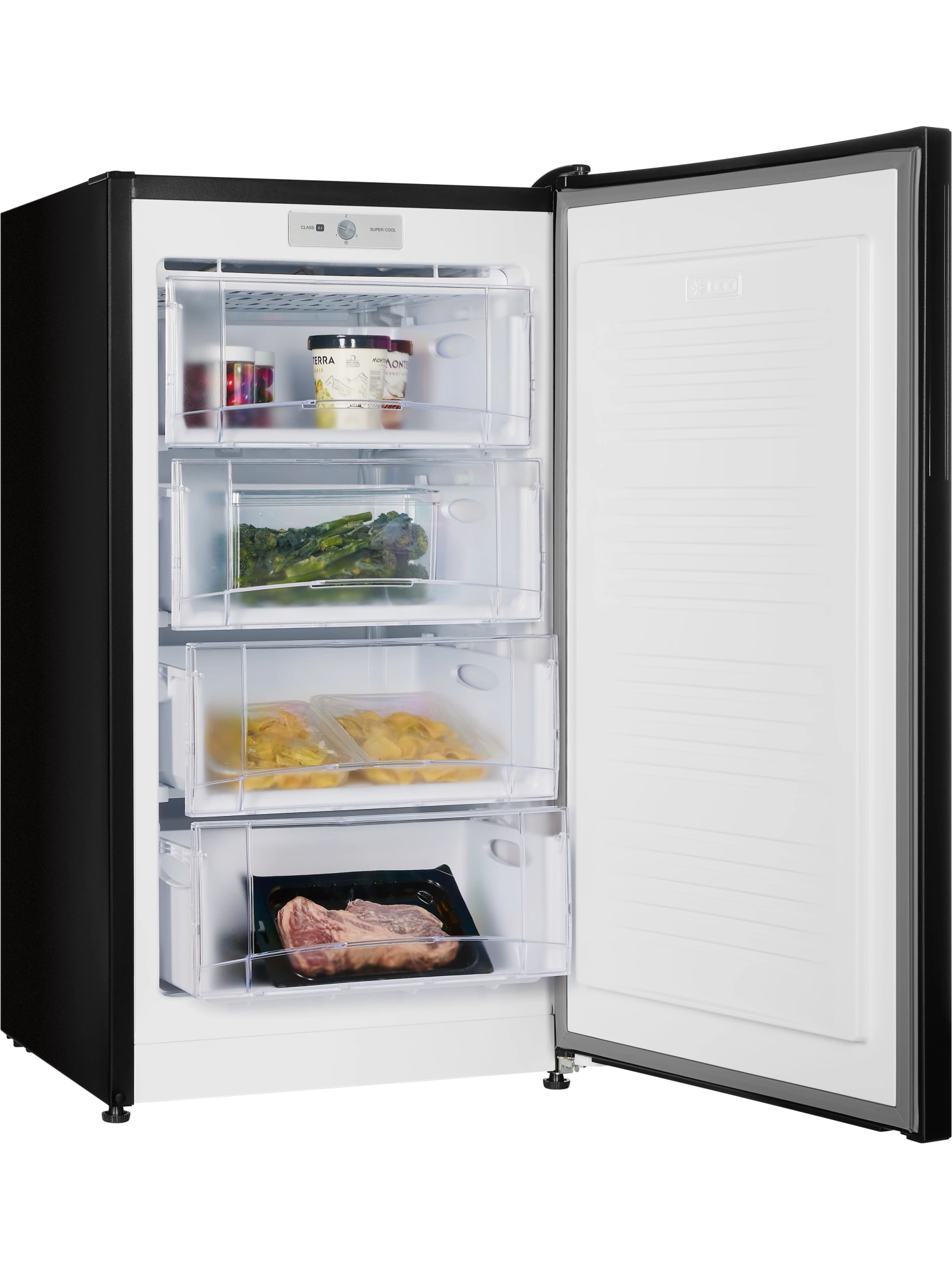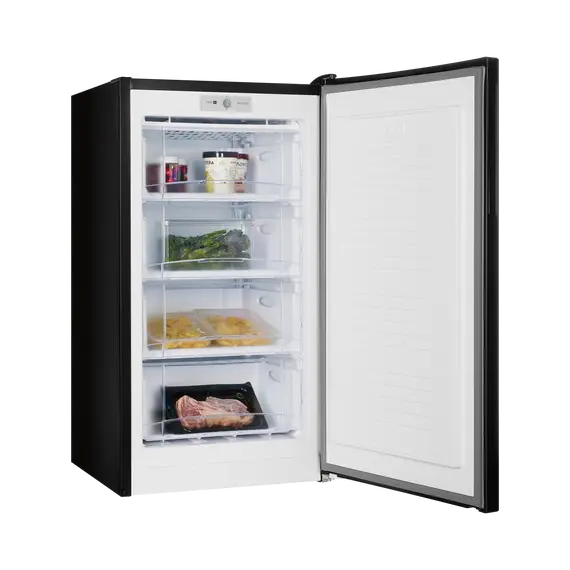 - Морозильник черного матового цвета с черной интегрированной ручкой и продуманным внутренним пространством станет стильным и технологичным акцентом на вашей кухне. Высота устройства 109 см. Для комфортного открытия и установки морозильника в удобном месте — дверь можно перенавесить с правой стороны на левую.
