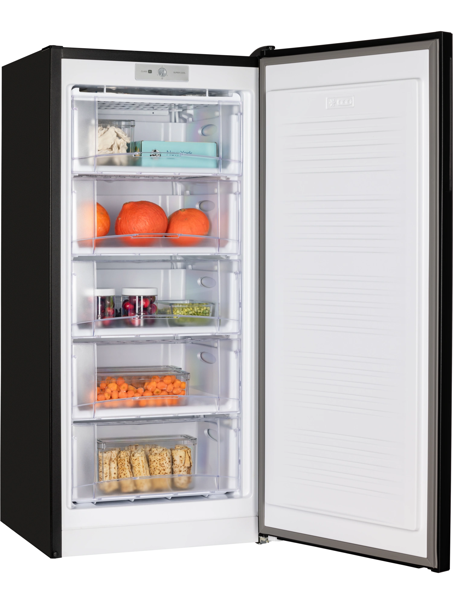 - Морозильник черного матового цвета с черной интегрированной ручкой и продуманным внутренним пространством станет стильным и технологичным акцентом на вашей кухне. Высота устройства 128 см. Для комфортного открытия и установки морозильника в удобном месте — дверь можно перенавесить с правой стороны на левую.