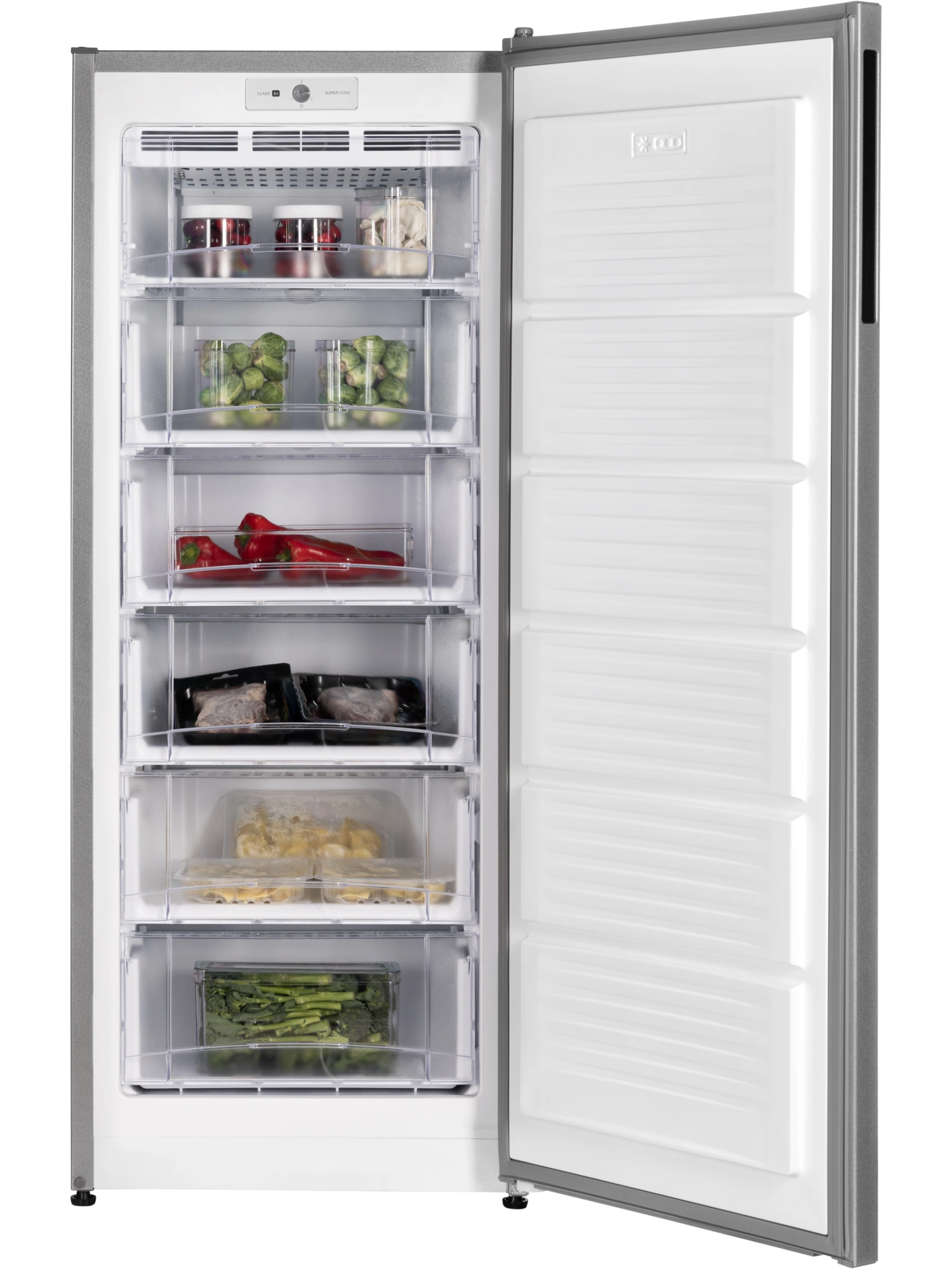 - Морозильник серебристого цвета с черной интегрированной ручкой и продуманным внутренним пространством станет стильным и технологичным акцентом на вашей кухне. Высота устройства 147 см. Для комфортного открытия и установки морозильника в удобном месте — дверь можно перенавесить с правой стороны на левую.