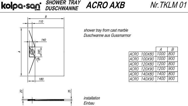 Мраморный поддон Kolpa-San Acro 120х90 см, цвет белый. Сифон, панели и каркас приобретаются отдельно.