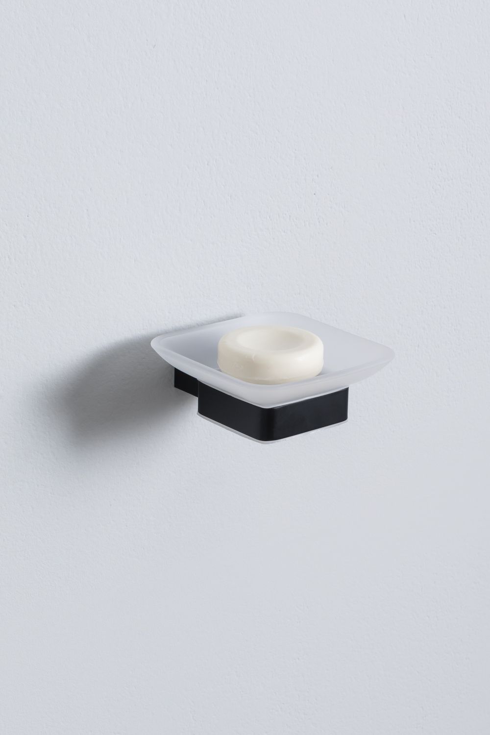 Мыльница Allen Brau Infinity 6.21004-31, с настенным держателем, материал латунь/керамика/стекло, цвет белый/чёрный матовый.