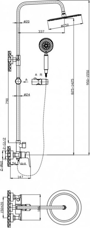 - Обратите внимание, данная модель имеет регулируемый профиль, в диапазоне от-до (75-90)x(75-90)x190 см, который позволит идеально подогнать изделие под любые размеры в вашей душевой.
