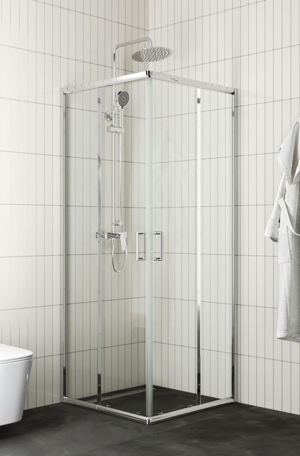 Набор 2 в 1: Душевое ограждение BelBagno Unique, профиль хром, стекло прозрачное. Габариты регулировки (750-900)х(750-900)х1900 мм, вход 510 мм + Душевая стойка BelBagno ANCONA-DOCM-CRM, цвет хром. Поддон приобретается отдельно.