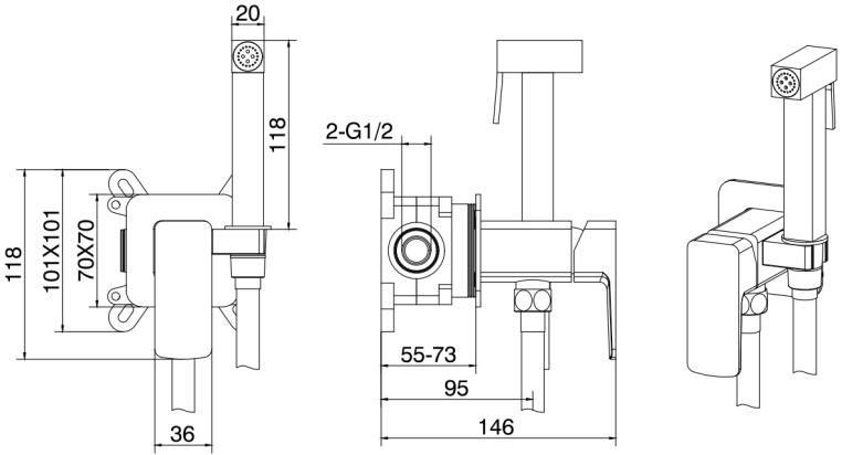 • Шланг: 1.2m PVC (EPDM inside, anti-twist, brass nut)