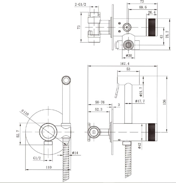 Набор для гигиенического душа Allen Brau Liberty 5.33005-MG со скрытой частью, материал латунь, цвет графит.