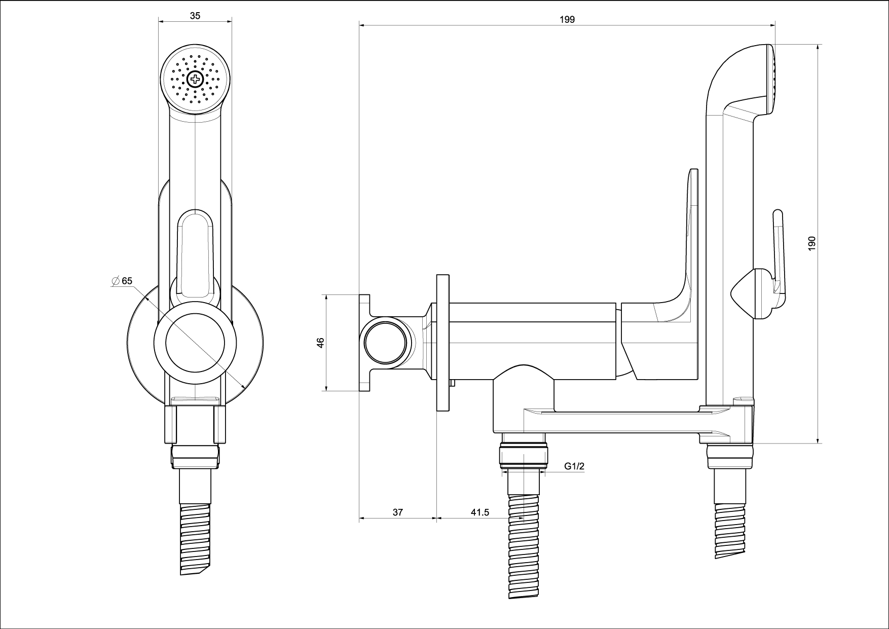 - Гигиеническая лейка оснащена нажимным механизмом для остановки потока воды
