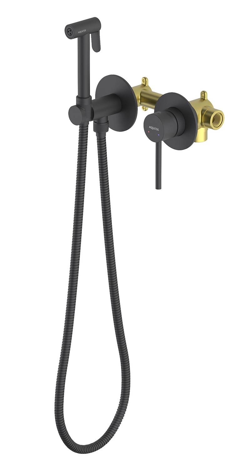 Набор для гигиенического душа Aquatek Европа AQ1319MB со скрытой частью, материал латунь, цвет чёрный матовый.