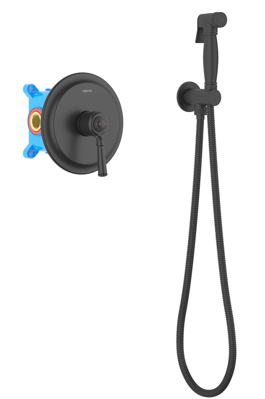 Набор для гигиенического душа Aquatek Классик AQ1519MB со скрытой частью, материал латунь, цвет чёрный матовый.