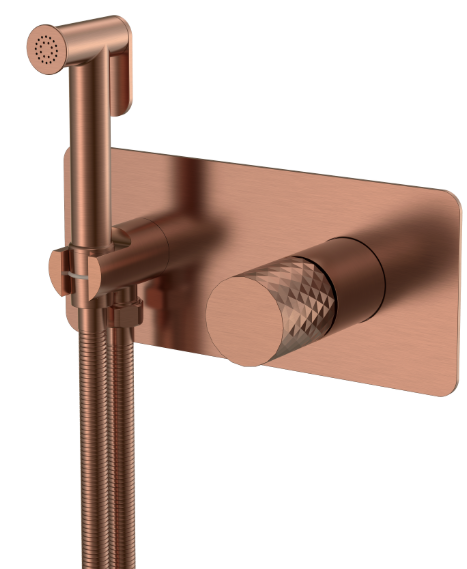 Набор для гигиенического душа Boheme Stick 127-CB со скрытой частью в комплекте, материал - латунь, цвет брашированная медь.