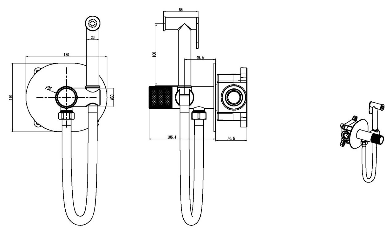 Набор для гигиенического душа Boheme Tech 157-NB (со скрытой частью) никель