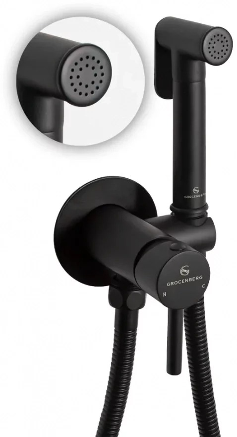 Набор для гигиенического душа Grocenberg GB001BL со скрытой частью, материал латунь, цвет чёрный матовый.
