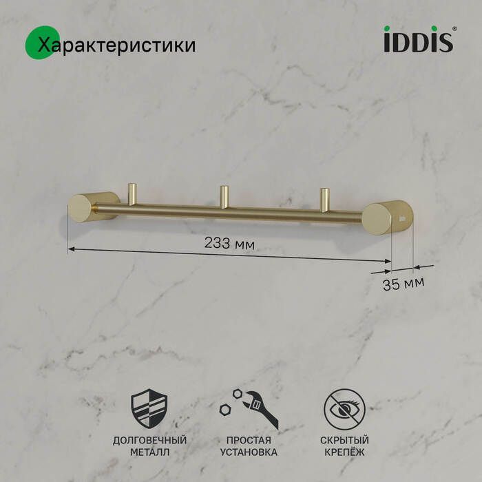 Набор крючков Iddis Petite PETG0S3i41, цвет золото матовое