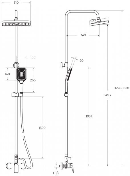 - Дополнительная информация: регулируемая высота верхнего душа