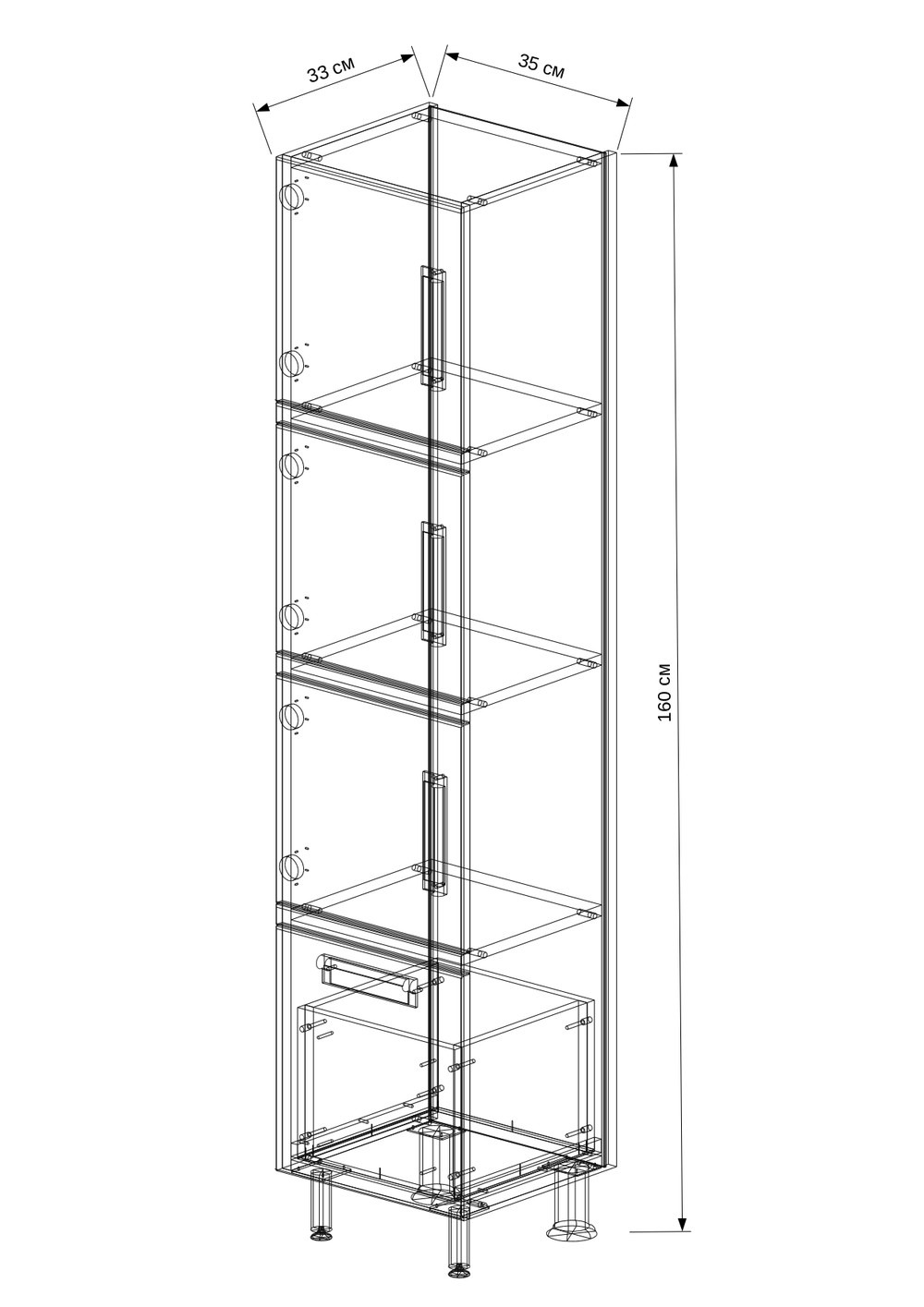 Пенал напольный EvaGold OLIVER EG010042 350х1600х330 мм, левосторонний, цвет белый/кора дуба.